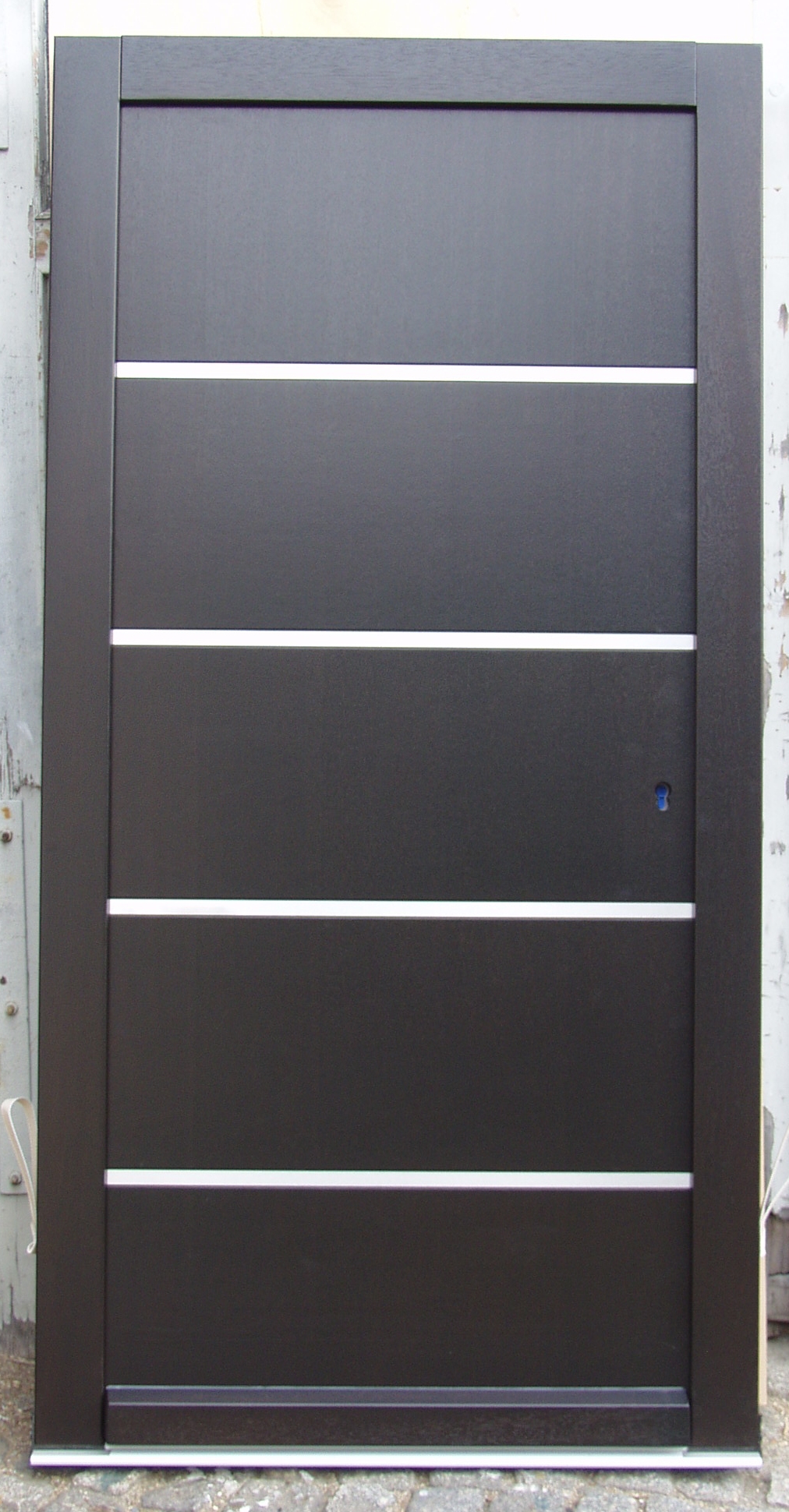 Türblatt glatt (Wiederstandsklasse 4) mit aufgestzten Edelstahlaplkationen, 4 Stck quer, ca 20 mm breit
